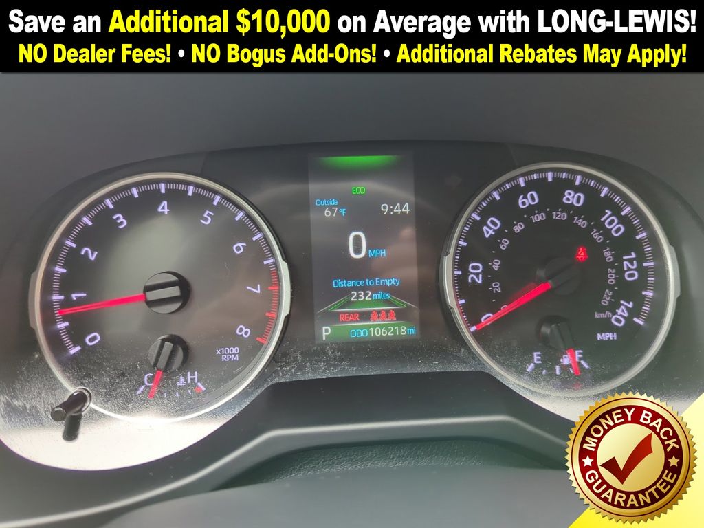 Black w/Fabric Seat Trim, 17" Steel Wheels, 4-Wheel Disc Brakes, 6 Speakers, ABS brakes, Air Conditioning, AM/FM radio: SiriusXM, AM/FM Stereo, Apple CarPlay/Android Auto, Auto High-beam Headlights, Axle Ratio: 3.177, Brake assist, Bumpers: body-color, Driver door bin, Driver vanity mirror, Dual front impact airbags, Dual front side impact airbags, Electronic Stability Control, Emergency communication system: Entune Safety Connect, Exterior Parking Camera Rear, Fabric Seat Trim, Four wheel independent suspension, Front anti-roll bar, Front Bucket Seats, Front Center Armrest, Front reading lights, Illuminated entry, Knee airbag, Low tire pressure warning, Occupant sensing airbag, Outside temperature display, Overhead airbag, Overhead console, Panic alarm, Passenger door bin, Passenger vanity mirror, Power door mirrors, Power steering, Power windows, Radio data system, Rear anti-roll bar, Rear seat center armrest, Rear window defroster, Rear window wiper, Remote keyless entry, Roof rack: rails only, Speed control, Speed-sensing steering, Split folding rear seat, Spoiler, Steering wheel mounted audio controls, Tachometer, Telescoping steering wheel, Tilt steering wheel, Traction control, Trip computer, Black w/Fabric Seat Trim.