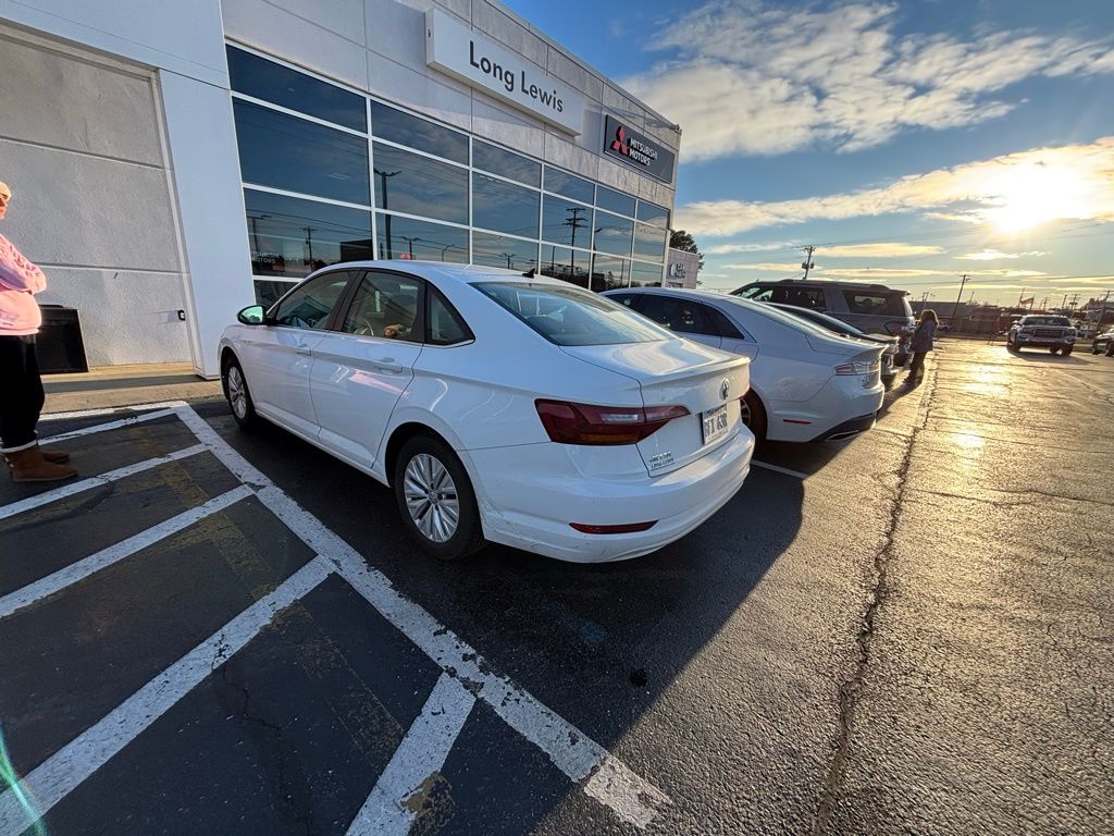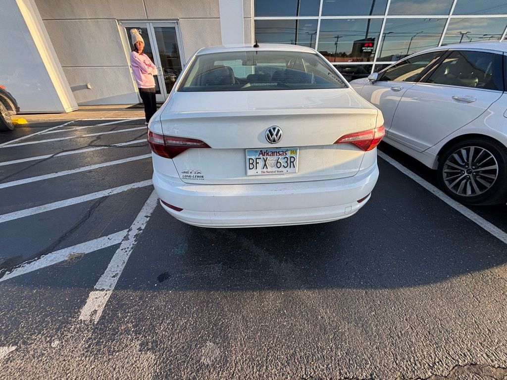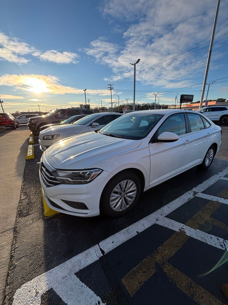 2019 Volkswagen Jetta 1.4T S White 1.4T S FWD 8-Speed Automatic with Tiptronic 1.4L TSI Cloth, 4 Speakers, 4-Wheel Disc Brakes, ABS brakes, Air Conditioning, Alloy wheels, AM/FM radio, Brake assist, Bumpers: body-color, Cloth Seat Trim, Delay-off headlights, Driver door bin, Driver vanity mirror, Dual front impact airbags, Dual front side impact airbags, Electronic Stability Control, Exterior Parking Camera Rear, Front anti-roll bar, Front Bucket Seats, Front Center Armrest, Front Comfort Seats, Front wheel independent suspension, Fully automatic headlights, Illuminated entry, Low tire pressure warning, Occupant sensing airbag, Outside temperature display, Overhead airbag, Panic alarm, Passenger door bin, Passenger vanity mirror, Power door mirrors, Power steering, Power windows, Radio data system, Radio: Composition Color w/6.5" Touchscreen, Rear anti-roll bar, Rear reading lights, Rear window defroster, Remote keyless entry, Speed control, Speed-sensing steering, Split folding rear seat, Steering wheel mounted audio controls, Tachometer, Telescoping steering wheel, Tilt steering wheel, Traction control, Trip computer, Variably intermittent wipers, Wheels: 16" Silver Rama, Cloth.