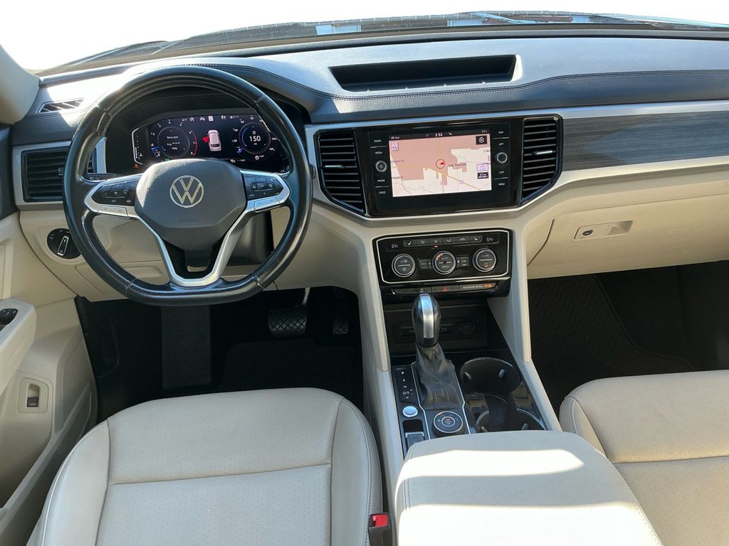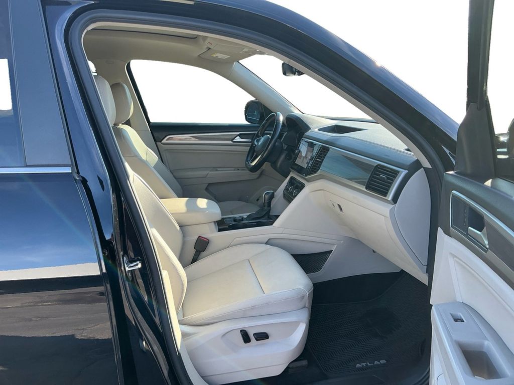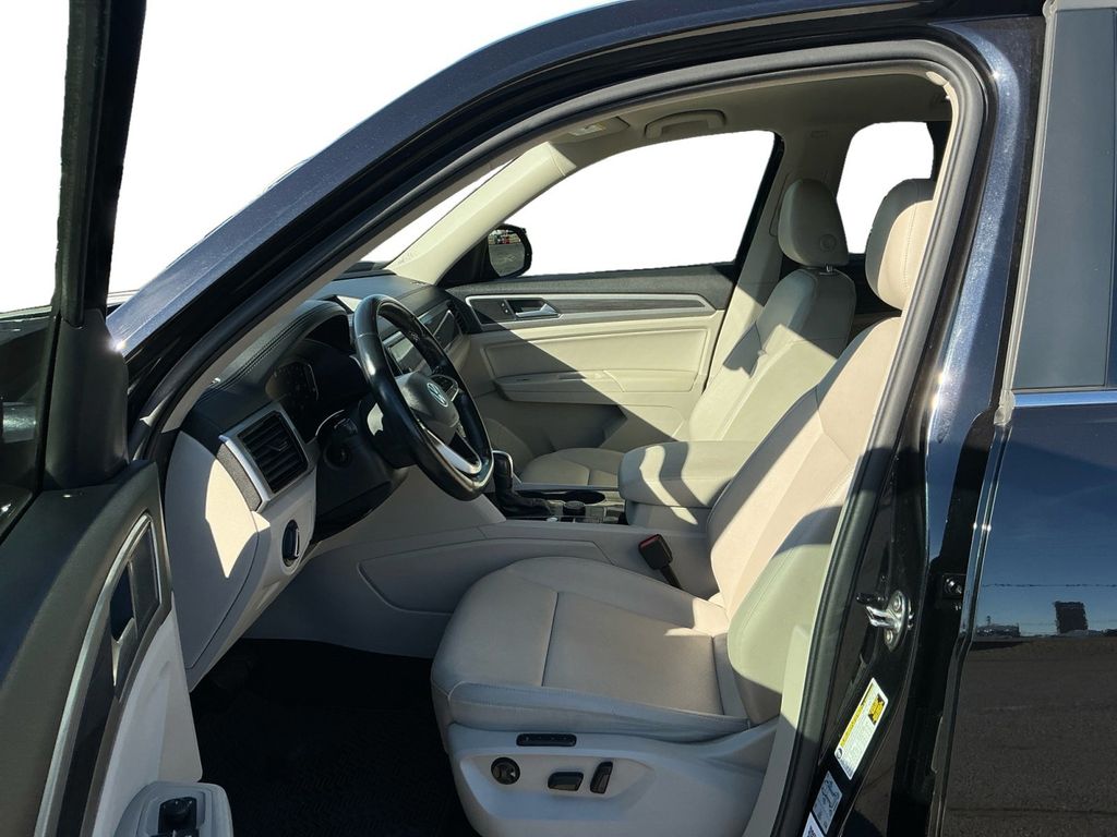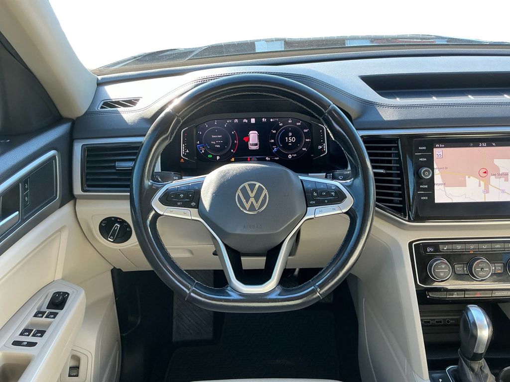 2021 Volkswagen Atlas SEL Deep Black Pearl SEL AWD 8-Speed Automatic with Tiptronic 3.6L V6 3.60 Axle Ratio, 3rd row seats: split-bench, 4-Wheel Disc Brakes, 6 Speakers, ABS brakes, Active Blind Spot Monitor, Air Conditioning, Alloy wheels, AM/FM radio: SiriusXM, Auto High-beam Headlights, Auto-dimming Rear-View mirror, Automatic temperature control, Brake assist, Bumpers: body-color, Compass, Delay-off headlights, Driver door bin, Driver vanity mirror, Dual front impact airbags, Dual front side impact airbags, Electronic Stability Control, Emergency communication system: VW Car-Net services (capabilities require enrollment or subscription), Exterior Parking Camera Rear, Four wheel independent suspension, Front anti-roll bar, Front Bucket Seats, Front Center Armrest, Front dual zone A/C, Front fog lights, Front reading lights, Fully automatic headlights, Heated Comfort Front Bucket Seats, Heated door mirrors, Heated front seats, Heated steering wheel, Heavy Duty Trunk Liner w/VW CarGo Blocks, Illuminated entry, Leather Shift Knob, Low tire pressure warning, Luggage Net, Memory seat, Navigation System, Occupant sensing airbag, Outside temperature display, Overhead airbag, Overhead console, Panic alarm, Passenger door bin, Passenger vanity mirror, Perforated V-Tex Leatherette Seating Surfaces, Power door mirrors, Power driver seat, Power Liftgate, Power moonroof, Power passenger seat, Power steering, Power windows, Privacy Cover, Radio data system, Rain sensing wipers, Rear air conditioning, Rear anti-roll bar, Rear reading lights, Rear seat center armrest, Rear window defroster, Rear window wiper, Remote CD player, Remote keyless entry, Roadside Assistance Kit, Roof rack: rails only, Rubber Mats Kit - Bench Seat, Security system, Speed control, Speed-sensing steering, Split folding rear seat, Spoiler, Standard Suspension, Steering wheel mounted audio controls, Tachometer, Telescoping steering wheel, Tilt steering wheel, Traction control, Trip computer, Turn signal indicator mirrors, Variably intermittent wipers, Wheels: 20" 5-Spoke Silver Alloy.