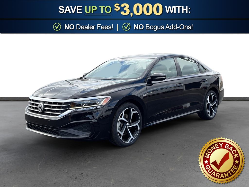 2022 Volkswagen Passat 2.0T R-Line Deep Black Pearl Metallic 2.0T R-Line FWD 6-Speed Automatic with Tiptronic 2.0L I4 TSI Turbocharged Titan Black Premium Synthetic, 4-Wheel Disc Brakes, 9 Speakers, ABS brakes, Active Blind Spot Monitor, Air Conditioning, Alloy wheels, AM/FM radio: SiriusXM, Auto High-beam Headlights, Auto-dimming Rear-View mirror, Automatic temperature control, Brake assist, Bumpers: body-color, Delay-off headlights, Driver door bin, Driver vanity mirror, Dual front impact airbags, Dual front side impact airbags, Electronic Stability Control, Emergency communication system, Exterior Parking Camera Rear, Four wheel independent suspension, Frameless Auto-Dimming Rearview Mirror, Front anti-roll bar, Front Bucket Seats, Front Center Armrest, Front dual zone A/C, Front reading lights, Fully automatic headlights, Heated door mirrors, Heated Front Comfort Seats, Heated front seats, Illuminated entry, Leather Shift Knob, Leather steering wheel, Low tire pressure warning, MojoMats w/Logo Carpeted Mats (Set of 4) (DISC), Navigation System, Occupant sensing airbag, Outside temperature display, Overhead airbag, Overhead console, Panic alarm, Passenger door bin, Passenger vanity mirror, Perforated V-Tex Leatherette Seating Surfaces, Power door mirrors, Power driver seat, Power moonroof, Power steering, Power windows, Radio data system, Radio: Discover Media w/Touchscreen Navigation, Rain sensing wipers, Rear anti-roll bar, Rear reading lights, Rear seat center armrest, Rear window defroster, Remote keyless entry, Security system, Speed control, Speed-sensing steering, Split folding rear seat, Spoiler, Steering wheel mounted audio controls, Tachometer, Telescoping steering wheel, Tilt steering wheel, Traction control, Trip computer, Turn signal indicator mirrors, Variably intermittent wipers, VW Care, Wheels: 19" x 8J 5-Spoke 2-Tone Machined Alloy, Titan Black Premium Synthetic.