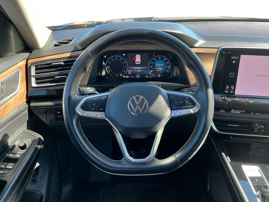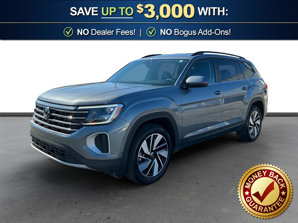 2024 Volkswagen Atlas 2.0T SE w/Technology Gray 2.0T SE w/Technology FWD 8-Speed Automatic with Tiptronic 2.0L TSI 3.60 Axle Ratio, 3rd row seats: split-bench, 4-Wheel Disc Brakes, 6 Speakers, ABS brakes, Air Conditioning, Alloy wheels, AM/FM radio: SiriusXM with 360L, Auto-dimming Rear-View mirror, Automatic temperature control, Brake assist, Bumpers: body-color, Compass, Delay-off headlights, Driver door bin, Driver vanity mirror, Dual front impact airbags, Dual front side impact airbags, Electronic Stability Control, Emergency communication system: VW Car-Net Safe & Secure 5-year, Exterior Parking Camera Rear, Four wheel independent suspension, Front anti-roll bar, Front Bucket Seats, Front Center Armrest, Front dual zone A/C, Front fog lights, Front reading lights, Fully automatic headlights, Heated door mirrors, Heated front seats, Heated steering wheel, Heated/Actively Ventilated Front Bucket Seats, Illuminated entry, Low tire pressure warning, Occupant sensing airbag, Outside temperature display, Overhead airbag, Overhead console, Panic alarm, Passenger door bin, Passenger vanity mirror, Perforated V-Tex Leatherette Seating Surfaces, Power door mirrors, Power driver seat, Power Liftgate, Power steering, Power windows, Radio data system, Radio: MIB3 Composition Media, Rain sensing wipers, Rear air conditioning, Rear anti-roll bar, Rear reading lights, Rear seat center armrest, Rear window defroster, Rear window wiper, Remote keyless entry, Security system, Speed control, Speed-sensing steering, Split folding rear seat, Spoiler, Standard Suspension, Steering wheel mounted audio controls, Tachometer, Telescoping steering wheel, Tilt steering wheel, Traction control, Trip computer, Turn signal indicator mirrors, Variably intermittent wipers, Ventilated front seats, Wheels: 20" 2-Tone Machined Alloy.