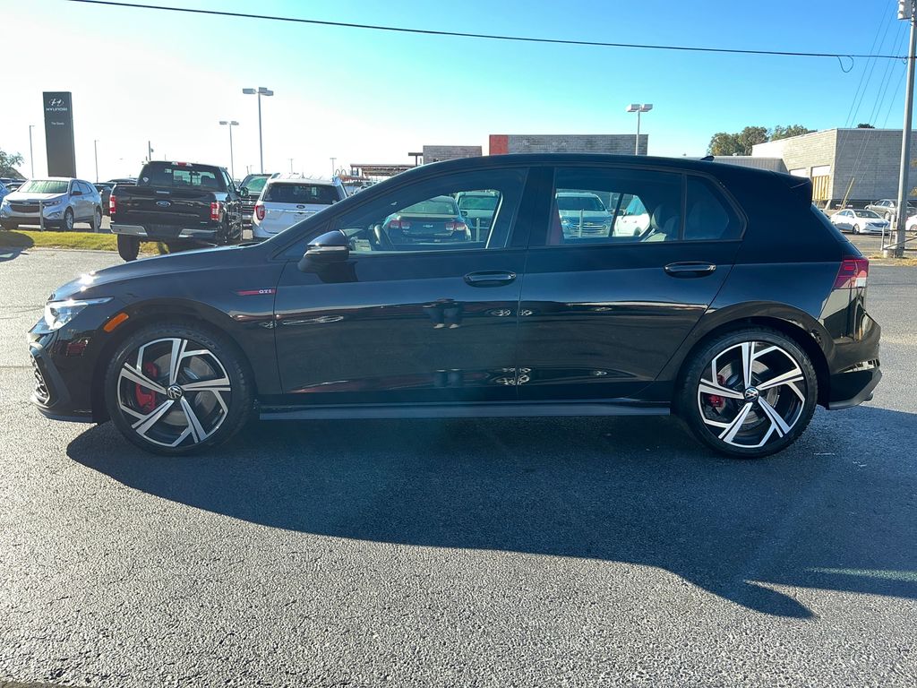 2024 Volkswagen Golf GTI 2.0T SE Black 2.0T SE FWD 7-Speed DSG Automatic with Tiptronic 2.0L TSI DOHC 4-Wheel Disc Brakes, 9 Speakers, ABS brakes, Air Conditioning, Alloy wheels, AM/FM radio: SiriusXM with 360L, Auto-dimming Rear-View mirror, Automatic temperature control, Brake assist, Bumpers: body-color, Cloth Seating Surfaces, Compass, Delay-off headlights, Driver door bin, Driver vanity mirror, Dual front impact airbags, Dual front side impact airbags, Electronic Stability Control, Emergency communication system: VW Car-Net Safe & Secure 5-year, Exterior Parking Camera Rear, Forward collision: FCW w/Autonomous Emergency Braking mitigation, Four wheel independent suspension, Front anti-roll bar, Front Bucket Seats, Front Center Armrest, Front fog lights, Front reading lights, Fully automatic headlights, harman/kardon® Speakers, Heated door mirrors, Heated front seats, Heated Front Top Sport Seats, Heated steering wheel, Illuminated entry, Lane Departure Warning System, Leather steering wheel, Low tire pressure warning, Navigation System, Occupant sensing airbag, Outside temperature display, Overhead airbag, Overhead console, Panic alarm, Passenger door bin, Passenger vanity mirror, Power door mirrors, Power driver seat, Power moonroof: Panoramic, Power passenger seat, Power steering, Power windows, Radio data system, Radio: MIB3 Discover Pro w/10" Touchscreen Navi, Rain sensing wipers, Rear anti-roll bar, Rear reading lights, Rear seat center armrest, Rear window defroster, Rear window wiper, Remote keyless entry, Security system, Speed control, Speed-sensing steering, Speed-Sensitive Wipers, Split folding rear seat, Spoiler, Sport steering wheel, Steering wheel mounted audio controls, Tachometer, Telescoping steering wheel, Tilt steering wheel, Traction control, Trip computer, Turn signal indicator mirrors, Variably intermittent wipers, Wheels: 18" 2-Tone Machined Alloy.