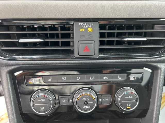 3.23 Axle Ratio, 4-Wheel Disc Brakes, 6 Speakers, ABS brakes, Active Blind Spot Monitor, Air Conditioning, Alloy wheels, AM/FM radio: SiriusXM with 360L, Auto High-beam Headlights, Automatic temperature control, Brake assist, Bumpers: body-color, CloudTex & Cloth Seating Surfaces, Compass, Delay-off headlights, Driver door bin, Driver vanity mirror, Dual front impact airbags, Dual front side impact airbags, Electronic Stability Control, Emergency communication system: VW Car-Net Safe & Secure 5-year, Exterior Parking Camera Rear, Front anti-roll bar, Front Bucket Seats, Front Center Armrest, Front dual zone A/C, Front reading lights, Front Strut Rear Torsion Beam Suspension, Front wheel independent suspension, Fully automatic headlights, Heated door mirrors, Heated Front Bucket Seats, Heated front seats, Heated steering wheel, Illuminated entry, Leather Shift Knob, Low tire pressure warning, Occupant sensing airbag, Outside temperature display, Overhead airbag, Overhead console, Panic alarm, Passenger door bin, Passenger vanity mirror, Power door mirrors, Power driver seat, Power steering, Power windows, Radio data system, Radio: MIB3 Composition Media AM/FM/HD, Rain sensing wipers, Rear anti-roll bar, Rear seat center armrest, Rear window defroster, Rear window wiper, Remote keyless entry, Roof rack: rails only, Security system, Speed control, Speed-sensing steering, Split folding rear seat, Spoiler, Steering wheel mounted audio controls, Tachometer, Telescoping steering wheel, Tilt steering wheel, Traction control, Trip computer, Variably intermittent wipers, Wheels: 18" 2-Tone Machined Alloy.